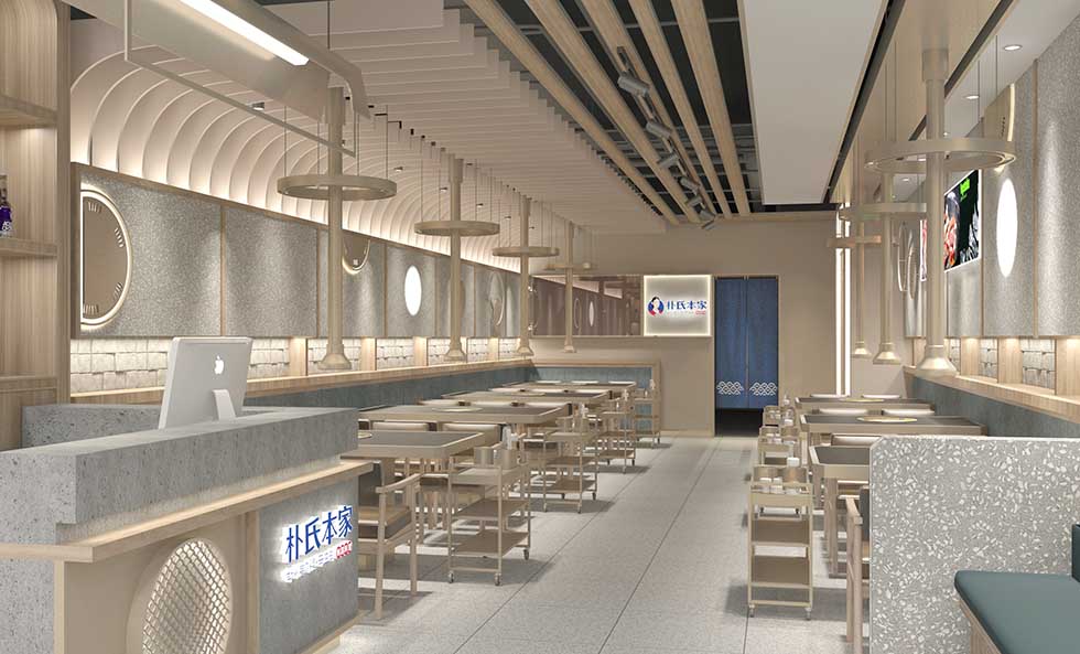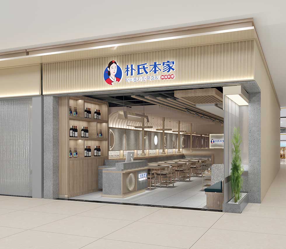 項目背景:樸氏本家是一個以炭烤五花肉、特色湯鍋、風味拌飯等為主的家族傳統(tǒng)韓國美食。艾的爾設(shè)計承接其品牌VI設(shè)計,成立品牌VI設(shè)計小組7人:品牌總監(jiān)1名、設(shè)計總監(jiān)1名、資深設(shè)計師4名、文案策劃1名。了解品牌的本質(zhì)需求、商業(yè)目的、目標消費群體審美偏好、行業(yè)與品類特性及品牌文化。本方案圖形家文字的組合方式詮釋品牌LOGO,圖形部分是一個微笑服務(wù)的韓國傳統(tǒng)婦女的形象,有著韓國的傳統(tǒng)發(fā)型、韓國的傳統(tǒng)服飾、頭上戴著韓國的木槿花,代表著樸氏本家做的韓國料理歷史傳承悠久,極具傳統(tǒng)特色。字體的設(shè)計筆觸有利無比,充滿活力,體現(xiàn)了餐廳出品有度、有規(guī)則且穩(wěn)定。文字旁邊的小圖形適當點綴,顏色也選取了韓國太極中的中的紅色和藍色相間,韓國傳統(tǒng)元素的加入,充分體現(xiàn)了地域特色和文化氛圍。空間設(shè)計以原木為主材配合灰色大理石,讓顧客體驗回歸自然的感覺,體驗原生態(tài),親和力更好。