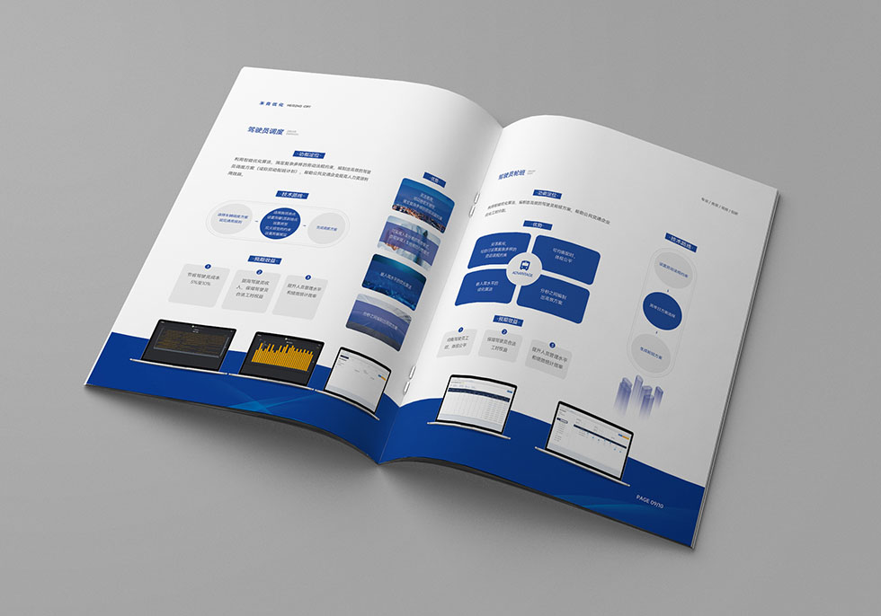 項目背景:武漢禾青優(yōu)化科技有限公司創(chuàng)建于2019年6月,軟件著作權(quán)10項,發(fā)明專利5項,以全面建設公共交通運營服務智能化為核心,為用戶(政府、公交企業(yè)、乘客)提供智能公交一體化解決方案,幫助建成高品質(zhì)、高效益的公共交通服務體系。艾的爾承接其畫冊設計制作,成立品牌設計小組,與企業(yè)進行深入溝通,明確企業(yè)對于畫冊設計的需求,畫冊采用藍色與白色,體現(xiàn)科技感,奠定了畫冊整體基調(diào)。封面以公交現(xiàn)線圖為載體,體現(xiàn)企業(yè)主營業(yè)務,表現(xiàn)手法比較創(chuàng)新,內(nèi)頁圖片采用跨版的表現(xiàn)手法,大氣高級,提煉核心要點,進行精煉設計。封面采用藍色,藍色則寓意企業(yè)、汽車等標準色,它代表智慧,象征著和諧世界、永不言棄的精神。