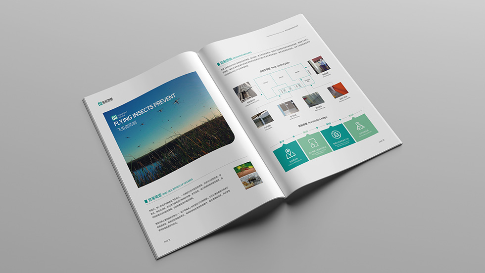 項目背景:世紀環(huán)亞是一家全國性集團公司。是中國衛(wèi)生有害生物防制協(xié)會會員單位,以“締造中國蟲害服務優(yōu)質供應商”為愿景的全國A級蟲害服務公司,與德國巴斯夫、德國拜耳、英國先正達等行業(yè)巨頭建立強強戰(zhàn)略合作伙伴關系,公司業(yè)務遍及全國上百省市?!百Y深的專家團隊、領先的專業(yè)技術、完整的服務方案、先進的消殺器械、優(yōu)質的跟蹤服務”一直是公司的主打品牌,通過多年的實踐,用口碑見證了服務效果,用效果見證了專家實力,深受各界好評。艾的爾承接其畫冊設計制作,成立品牌設計小組,與企業(yè)進行深入溝通,明確企業(yè)對于畫冊設計的需求,封面采用大面積留白為主體色,大氣簡約,字體色和背景圖采用生物綠色,凸顯主題,行業(yè)屬性生物防制行業(yè)。
