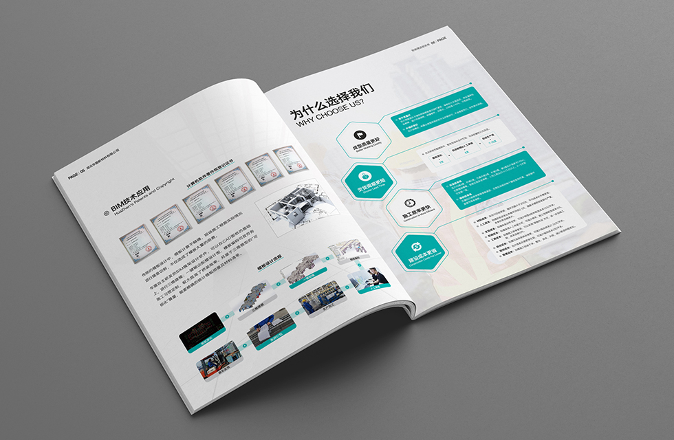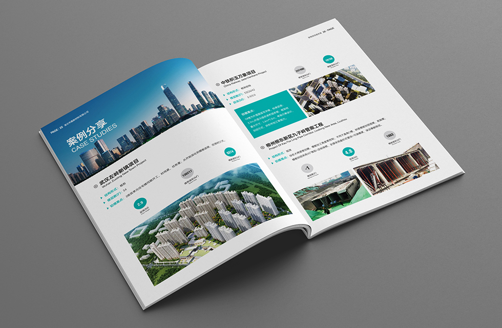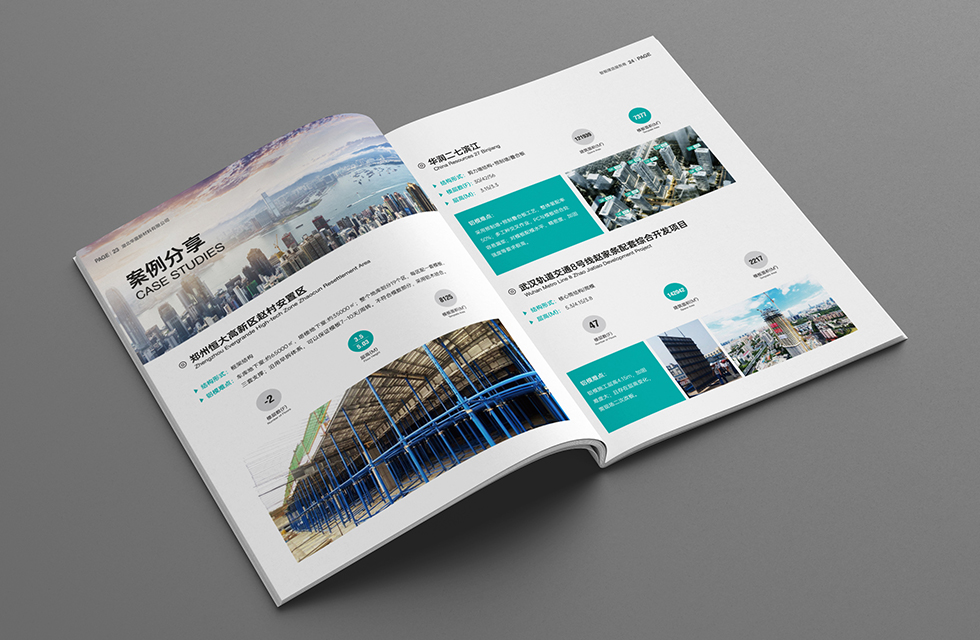 項(xiàng)目背景:華震集團(tuán)是一家以經(jīng)營(yíng)建筑材料為主,集建筑總包、勞務(wù)大清包、鋼材商砼貿(mào)易、新材料研發(fā)制造、鋼材大小料加工、倉(cāng)儲(chǔ)和物流為一體的中大型企業(yè)。集團(tuán)建有黨組織、工會(huì)、公益志愿組織和完善的企業(yè)文化建設(shè)體系。艾的爾設(shè)計(jì)接受其委托,承接畫(huà)冊(cè)設(shè)計(jì)項(xiàng)目。在畫(huà)冊(cè)設(shè)計(jì)、創(chuàng)意的過(guò)程中,設(shè)計(jì)師通過(guò)對(duì)行業(yè)屬性進(jìn)行深入地了解,在畫(huà)冊(cè)設(shè)計(jì)、創(chuàng)意的過(guò)程中,重點(diǎn)在表現(xiàn)企業(yè)主要是從事建筑總包,建筑材料供應(yīng)等服務(wù),因此在設(shè)計(jì)中以藝術(shù)的手法表現(xiàn)企業(yè)的行業(yè)屬性。在畫(huà)冊(cè)色封面設(shè)計(jì)中,設(shè)計(jì)師考慮到華震集團(tuán)的企業(yè)定位是智能建造服務(wù)商,生產(chǎn)理念上突出智能化、標(biāo)準(zhǔn)化、環(huán)?;虼松蔬x擇藍(lán)綠色系,給人環(huán)保和智慧的觀感,給人一種平和恬靜的感官效果,封面中建筑樓體直接展現(xiàn)華震的業(yè)務(wù)范圍,建筑類(lèi)(地下室、辦公體系建筑、住宅體系建筑)建造服務(wù),作為企業(yè)和項(xiàng)目畫(huà)冊(cè),能夠開(kāi)門(mén)見(jiàn)山傳達(dá)畫(huà)冊(cè)的類(lèi)別和價(jià)值。從封面中都彰顯出企業(yè)的實(shí)力強(qiáng)大,沉穩(wěn)細(xì)致。在內(nèi)頁(yè)的設(shè)計(jì)中,按黃金分割比例設(shè)計(jì),標(biāo)題與文字的板塊相互呼應(yīng)文圖分布疏密有致,整個(gè)版面簡(jiǎn)潔優(yōu)雅。大膽留白,恰到好處的留白使畫(huà)冊(cè)設(shè)計(jì)版面注入了生機(jī),版面設(shè)計(jì)中有部分透明化的背景圖,是整個(gè)畫(huà)面不死板呆滯,整體給人大氣、智慧的印象。整個(gè)畫(huà)冊(cè)傳達(dá)出了沉穩(wěn)、專(zhuān)業(yè)的視覺(jué)形象,對(duì)塑造企業(yè)專(zhuān)業(yè)、實(shí)力的形象有極大的作用。