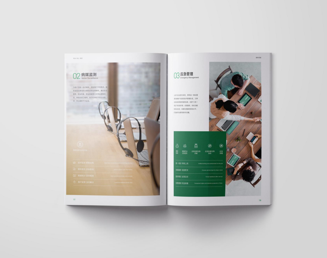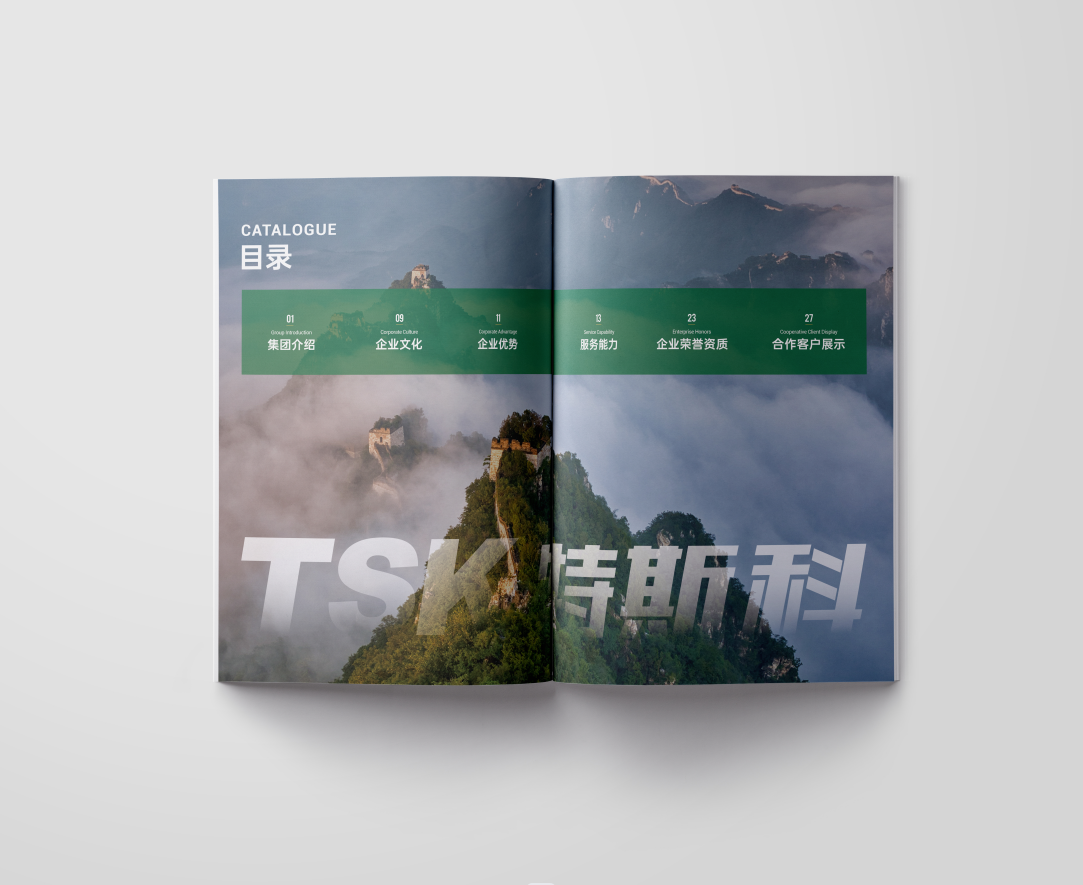 項目背景:TSK特斯科集團是一家集團化、整合化、多品牌經(jīng)營的PCO(有害生物防制)企業(yè)。致力于在蟲控服務(wù)、應(yīng)急管理、環(huán)境與空氣治理、消毒殺菌等方面為客戶提供貼心可靠的服務(wù)與安心高效的保障。服務(wù)內(nèi)容涵蓋從技術(shù)檢查和日常預(yù)防性檢查,到蟲害預(yù)防、控制凈滅工作、清除害蟲污染物、專業(yè)消毒等全過程。此外還針對不同行業(yè)的客戶需求,協(xié)助管理供應(yīng)鏈,提供包括人員培訓(xùn)、蟲害風險咨詢、鑒定報告、通過內(nèi)外部審計等高附加值服務(wù)。艾的爾設(shè)計通過與企業(yè)進行深入溝通,明確企業(yè)對于畫冊設(shè)計的需求,畫冊封面內(nèi)容簡潔并突出重點,綠色的采用,與品牌vi調(diào)性一致,符合行業(yè)屬性,在內(nèi)頁的設(shè)計中,按黃金分割比例設(shè)計,標題與文字的板塊相互呼應(yīng),圖文分布疏密有致,整個版面簡潔優(yōu)雅。畫冊內(nèi)頁的顏色選用上,和封面相互呼應(yīng),以綠白等清新雅致的顏色為主。整個畫冊,設(shè)計精簡、嚴格,充分展現(xiàn)出了企業(yè)的訴求和形象。