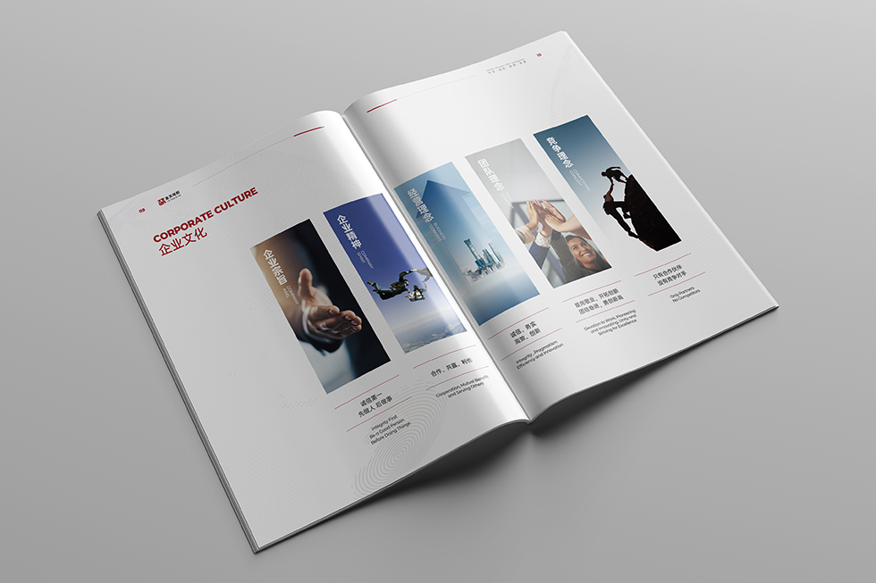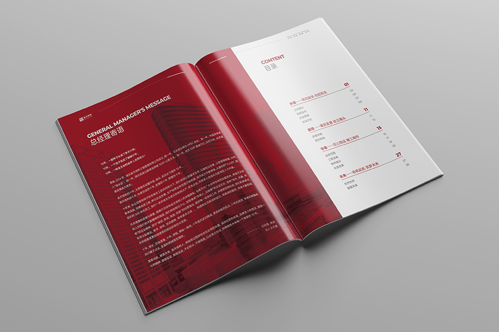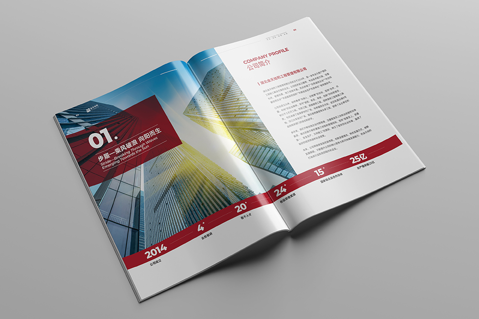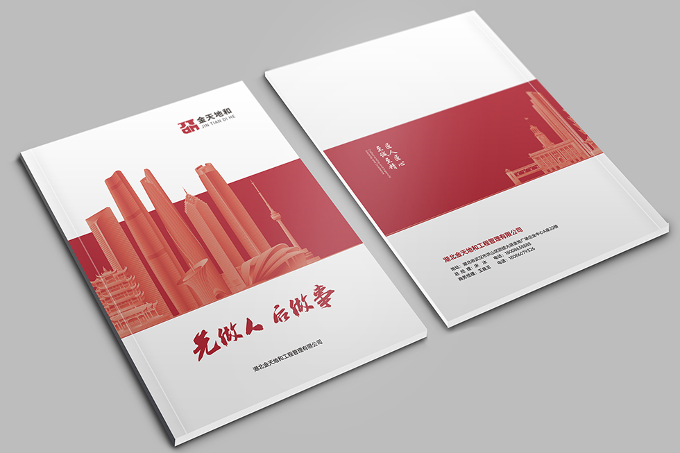 項目背景:湖北金天地和工程管理有限公司成立于2014年,是一家專業(yè)為客戶提供工程施工解決方案的企業(yè)。公司經濟實力雄厚,專業(yè)技術能力強,設備先進,管理完善,施工經驗豐富。艾的爾設計通過與企業(yè)進行深入溝通,明確企業(yè)對于畫冊設計的需求,畫冊封面內容簡潔并突出重點,,主色調采用紅白搭配,對比強烈,容易吸引注意力。版面圖文并茂,圖片與文字相輔相成,均衡、合理,生動活潑的色彩搭配與豐富的細節(jié),給人以飽滿的視覺印象。