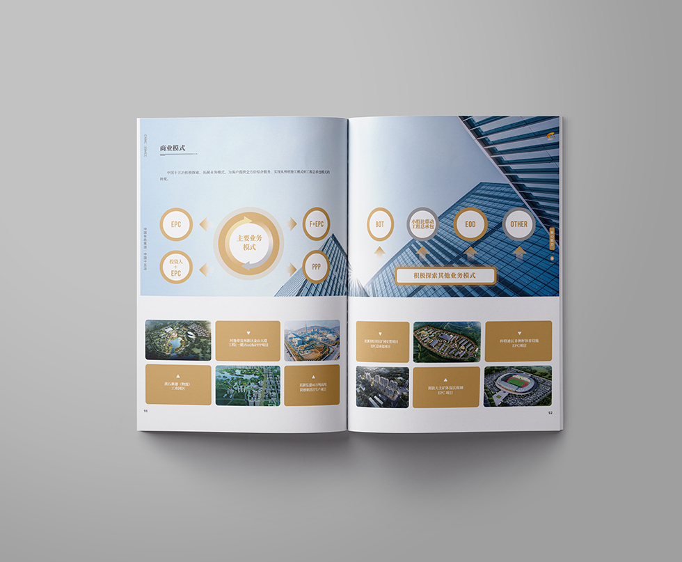 項目背景:中國十五冶金建設(shè)有限公司(簡稱“中國十五冶”)是具有特級總承包資質(zhì)的大型國有施工企業(yè),隸屬于國務(wù)院國資委直管的中國有色礦業(yè)集團有限公司。中國十五冶成立于1953年,現(xiàn)有資產(chǎn)40余億元,從業(yè)人員2萬余人,其中核心管理人員約5000人;擁有施工機械設(shè)備4998臺(套),動力裝備率為31.75kw/人,技術(shù)裝備率為130372元/人。公司擁有冶煉工程總承包特級資質(zhì),礦山工程、電力工程、公路工程、房屋建筑工程、機電安裝工程、石油化工工程、市政工程等7項總承包一級資質(zhì)及5項專業(yè)資質(zhì)。同時,還具有對外經(jīng)濟合作經(jīng)營資格、進出口企業(yè)資格和對外援助成套項目施工任務(wù)A級實施企業(yè)資格,可從事境外承包工程、輸出勞務(wù)和相關(guān)進出口業(yè)務(wù)。艾的爾設(shè)計承接其畫冊設(shè)計,成立品牌設(shè)計小組,與企業(yè)進行深入溝通,明確企業(yè)對于畫冊設(shè)計的需求,封面大面留白,整體顯得干凈、大氣、識別性更強,第一眼就能清晰明了的看到主題字。內(nèi)頁也是白色風(fēng)格為主,清晰的看到二級標(biāo)題與內(nèi)容,能夠突出企業(yè)的畫冊宣傳內(nèi)容。