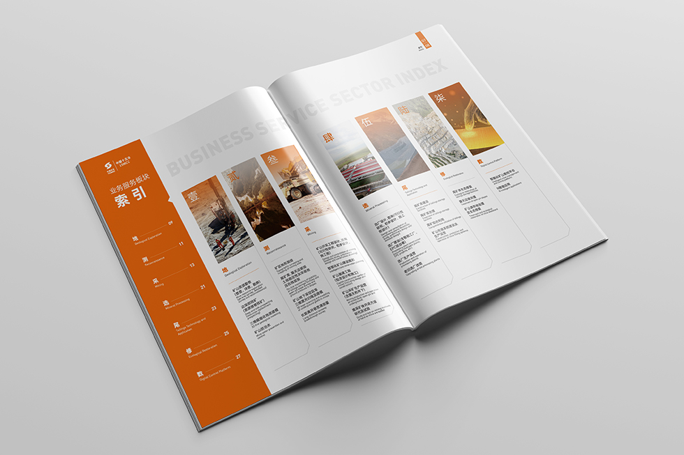 項目背景:湖北中色礦山工程技術(shù)有限公司成立于1963年,為中國十五冶金建設(shè)集團(tuán)有限公司全資子公司,是根據(jù)國企改革發(fā)展需要,落實中國有色礦業(yè)集團(tuán)有限公司發(fā)展戰(zhàn)略、資源整合,打造國際化采礦業(yè)務(wù)專業(yè)平臺的重要舉措。公司注冊資本為人民幣3億元,具有礦山工程施工總承包一級、隧道工程專業(yè)承包二級、建筑機(jī)電安裝工程專業(yè)承包二級、起重設(shè)備安裝工程專業(yè)承包二級和營業(yè)性爆破作業(yè)許可四級等資質(zhì);主要從事露天及井下采礦作業(yè)、礦山地質(zhì)勘探、礦山生產(chǎn)運(yùn)作、礦山環(huán)境改造治理等業(yè)務(wù)。艾的爾設(shè)計接受其委托,承接畫冊設(shè)計項目。在畫冊設(shè)計、創(chuàng)意的過程中,設(shè)計師通過對行業(yè)屬性進(jìn)行深入地了解,在畫冊的封面設(shè)計中,創(chuàng)意的過程中,設(shè)計師通過對行業(yè)屬性進(jìn)行深入地了解,以身臨其境的設(shè)計思路,生動地傳達(dá)了企業(yè)的文化。
