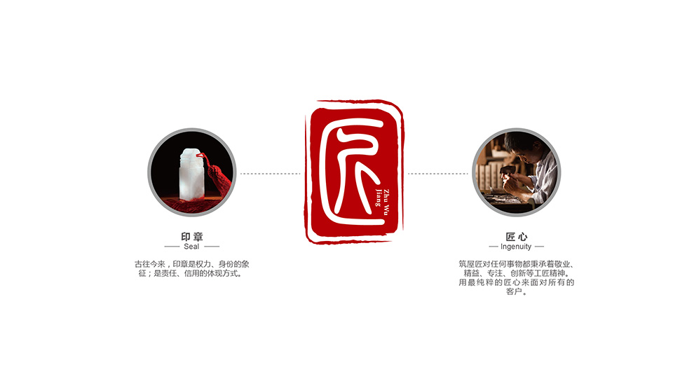 項目背景: 武漢半島筑屋科技有限公司于2005年8月成立,注冊資本800萬元;是大型裝備制造企業(yè)半島重工旗下,聚焦“中國鄉(xiāng)村自建房”領(lǐng)域,以“匠造美好生活”為使命,以受孕于“工匠精神”的“筑屋匠”為品牌,以設(shè)計為驅(qū)動力的鄉(xiāng)村綜合住宅生活公司。公司坐落在武漢東湖高新技術(shù)開發(fā)區(qū),占地近50000平方,建筑面積近60000平方。艾的爾設(shè)計承接其品牌VI設(shè)計,成立品牌VI設(shè)計小組7人:品牌總監(jiān)1名、設(shè)計總監(jiān)1名、資深設(shè)計師4名、文案策劃1名。了解品牌的本質(zhì)需求、商業(yè)目的、目標消費群體審美偏好、行業(yè)與品類特性及品牌文化。設(shè)計師采用印章和匠心元素的結(jié)合,印章是權(quán)力、身份的象征,是責(zé)任、信用的體現(xiàn)方式;匠心代表筑屋匠對任何事物都秉承著敬業(yè)、精益、專注、創(chuàng)新等工匠精神,用最純粹的匠心來面對所有客戶。設(shè)計小組反復(fù)修改,最后完成從概念到形象生動的塑造呈現(xiàn),項目在有效時間內(nèi)獲得了客戶驗收。