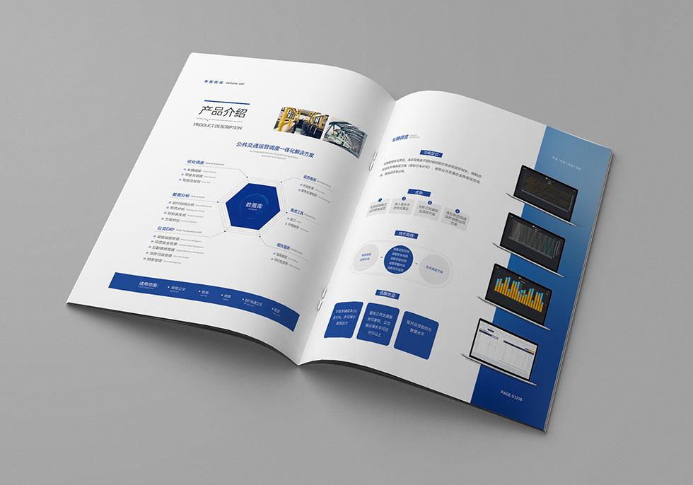 項目背景:武漢禾青優(yōu)化科技有限公司創(chuàng)建于2019年6月,軟件著作權(quán)10項,發(fā)明專利5項,以全面建設公共交通運營服務智能化為核心,為用戶(政府、公交企業(yè)、乘客)提供智能公交一體化解決方案,幫助建成高品質(zhì)、高效益的公共交通服務體系。艾的爾承接其畫冊設計制作,成立品牌設計小組,與企業(yè)進行深入溝通,明確企業(yè)對于畫冊設計的需求,畫冊采用藍色與白色,體現(xiàn)科技感,奠定了畫冊整體基調(diào)。封面以公交現(xiàn)線圖為載體,體現(xiàn)企業(yè)主營業(yè)務,表現(xiàn)手法比較創(chuàng)新,內(nèi)頁圖片采用跨版的表現(xiàn)手法,大氣高級,提煉核心要點,進行精煉設計。封面采用藍色,藍色則寓意企業(yè)、汽車等標準色,它代表智慧,象征著和諧世界、永不言棄的精神。