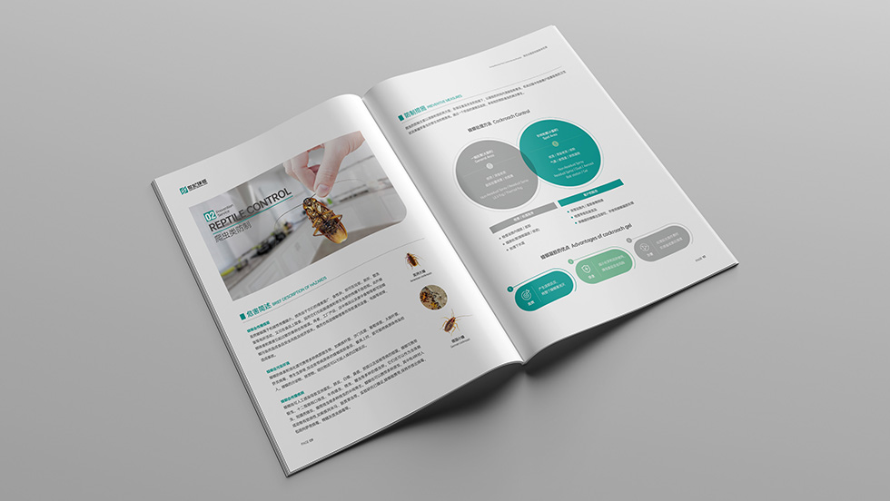 項目背景:世紀環(huán)亞是一家全國性集團公司。是中國衛(wèi)生有害生物防制協(xié)會會員單位,以“締造中國蟲害服務優(yōu)質供應商”為愿景的全國A級蟲害服務公司,與德國巴斯夫、德國拜耳、英國先正達等行業(yè)巨頭建立強強戰(zhàn)略合作伙伴關系,公司業(yè)務遍及全國上百省市?!百Y深的專家團隊、領先的專業(yè)技術、完整的服務方案、先進的消殺器械、優(yōu)質的跟蹤服務”一直是公司的主打品牌,通過多年的實踐,用口碑見證了服務效果,用效果見證了專家實力,深受各界好評。艾的爾承接其畫冊設計制作,成立品牌設計小組,與企業(yè)進行深入溝通,明確企業(yè)對于畫冊設計的需求,封面采用大面積留白為主體色,大氣簡約,字體色和背景圖采用生物綠色,凸顯主題,行業(yè)屬性生物防制行業(yè)。
